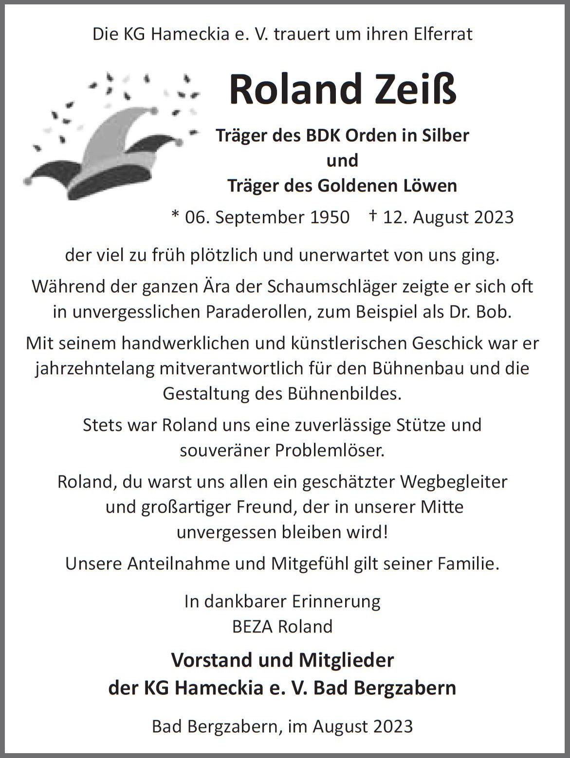 Die KG Hameckia e. V. Bad Bergzabern trauert um ihren langjährigen Weggefährten