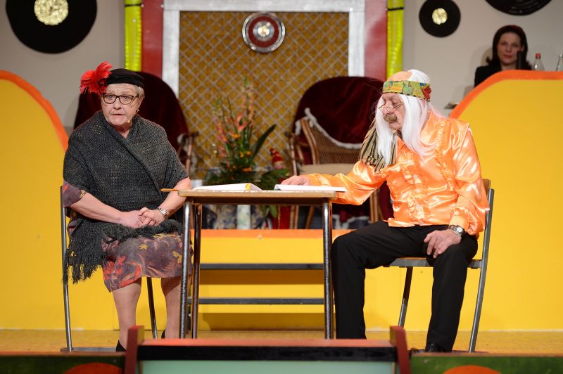 Nach der ersten Tanzrunde ging es weiter im Show- Programm. Die Spannung, wer das neue Prinzenpaar wird, war hoch. Es tauchten zwei Zauberinnen(Susanne Böttinger und Alwina Weizel) auf, welche aus einer Kiste das Kinderprinzenpaar hervorzaubern wollten. Zunächst leider ohne Erfolg. Es wollte einfach nicht klappen. Ramses (Andreas Weizel) und Marilyn Monroe (Silke Knoll) waren die ersten Ergebnisse der Zaubershow. Erst durch die Anleitung bei der erklärt wurde, welche Zutaten für ein Kinderprinzenpaar benötigt werden klappte es und die beiden Zauberinnen konnten erfolgreich unser neues Kinderprinzenpaar hervorzaubern.