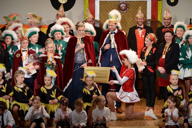 Zuerst einmal war die Zeit gekommen, um das Kinderprinzenpaar aus der vergangenen Kampagne zu verabschieden. Tom I.(Schütz) und Emelie II.(Oster) verabschiedeten sich mit einem gekonnt, witzigen Dialog vom närrischen Volk.