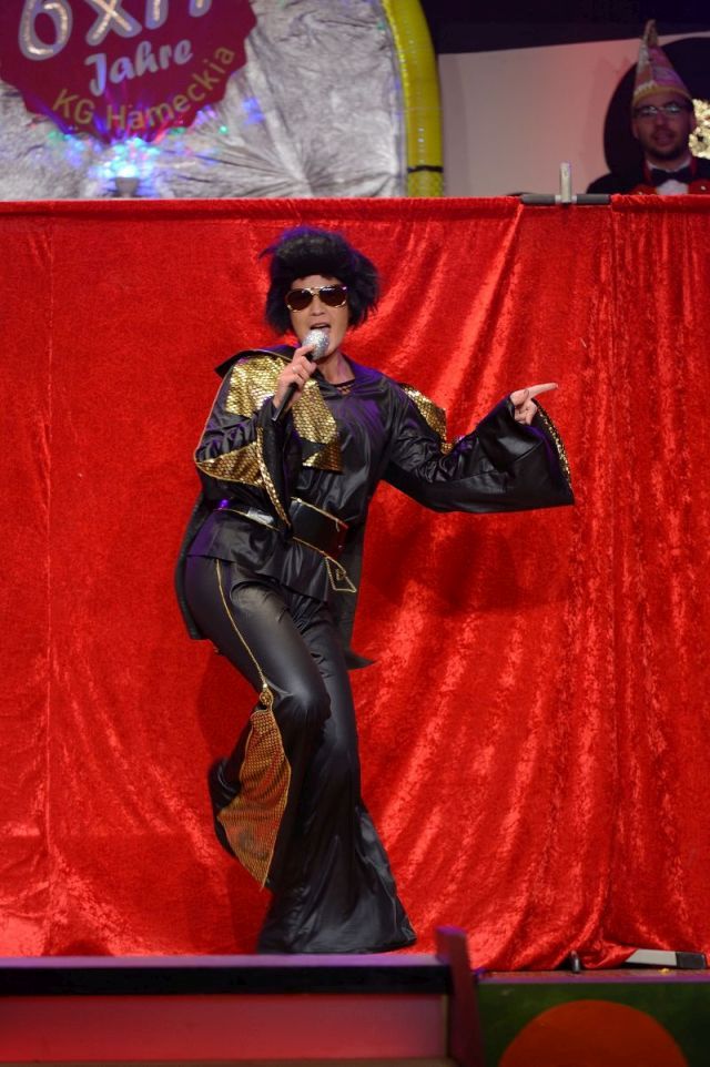 Im großen Finale, gab Jürgen Frenzel gemeinsam mit allen Aktiven auf der Bühne, das Lied “In Bad Hameckia muss der Karneval geboren sein” zum Besten. Anschließend wurde an der Bar noch bis in die Morgenstunden getanzt, gesungen und gelacht.