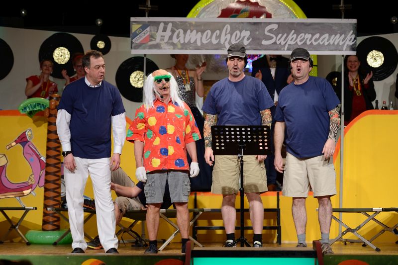 Die Hamecker Schaumschläger verwandelten die Bühne in das “Hamecker Supercamp”, hier zeigten sie sich als Bad Bergzaberner Z-Promi’s, verkörpert von Thomas Emser, Frank Naumann, Hermann Augspurger, Bernd Malysiak und Stefan Hitziger. Moderiert wurde das Camp von Jürgen Frenzel und Dirk Nerding. Die ärztliche Aufsicht übernahm Roland Zeiß als Doktor Bopp.