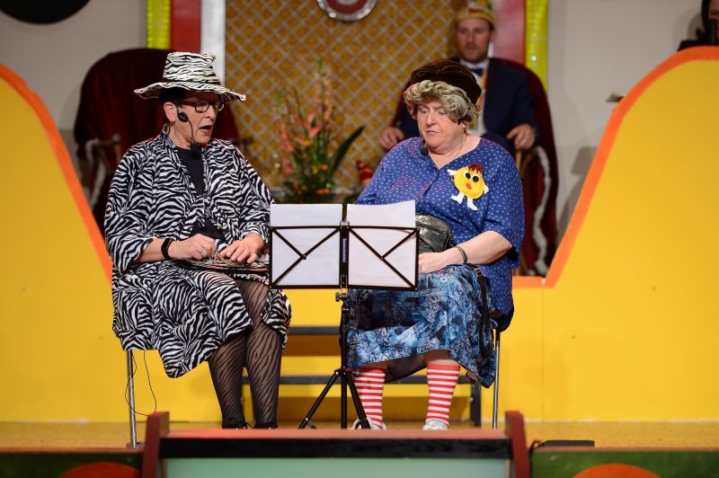 Angeführt wurden die Narren von den beiden Sitzungspräsidentinnen Sabine Bentz und Nikola Krumholz. Beide führten gekonnt mit viel Witz und Charme durch das Programm und bestanden somit ihre große Feuertaufe mit Bravour. Zusammen mit Susanne Böttinger, unserer Vorstandsvorsitzenden begrüßten sie das närrische Publikum und stellten unsere diesjährigen Jubiläumstollitäten vor.