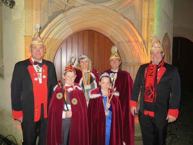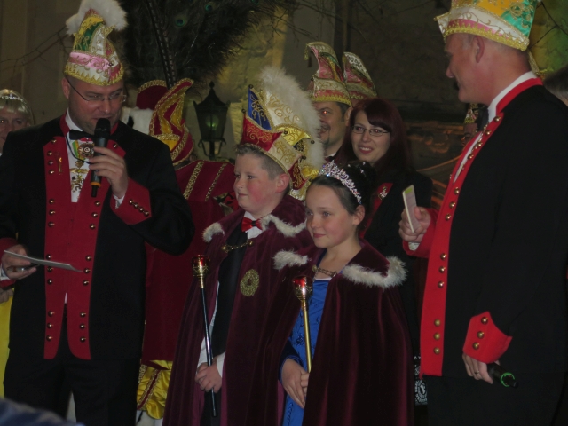 Laut ertönte der Schlachtruf :“BE-ZA“ durch das Gemäuer und die Sitzungspräsidenten Dirk Nerding und Jürgen Frenzel starteten gleich so richtig durch. Das noch amtierende „Dreigestirn, Prinz Sabinus I., JungsfrauStefanie I. und Bauer Siegfried I.“, sowie das Kinderprinzenpaar „Sophie I. & Elias I.“ wurde mit gebührendem Applaus verabschiedet. Im märchenhaften Schlossturm warteten bereits die neuen Kinderhoheiten, Prinz Marcel I. und Prinzessin Jule I., die mit ihrem witzigen und charmanten Auftreten, sich gleich ihren Platz in den Herzen der Narren sicherten.