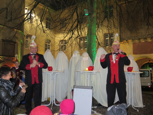 Zum ersten mal im historischen Schlossinnenhof vor zahlreichem Publikum und prominenten Gästen, befreundeten Vereinen des KVE aus Dahn, KVK aus Klingenmünster, den Hutschelhexen und der Spielvereinigung Bad Bergzabern, eröffnete die KG Hameckia die neue Kampagne 2014/15.