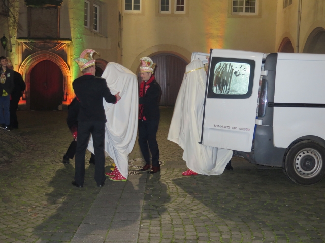 Doch wer thront dieses Jahr über die holde Narrenzunft? Dreigestirn, Prinzessin oder doch wieder ein Prinzenpaar? Per Eil-Express wurden vermummte Gestalten ins Geschehnis gebracht, und a´la „ Was bin ich“durften die Zuschauer den jeweils 3 Parteien Fragen stellen um so die zukünftigen Herrscher zu ermitteln.Ein weiteres Dreigestirn entpuppte sich als Fehlanzeige, auch eine Vater-Sohn Offenbarung erwies sich als falsch.