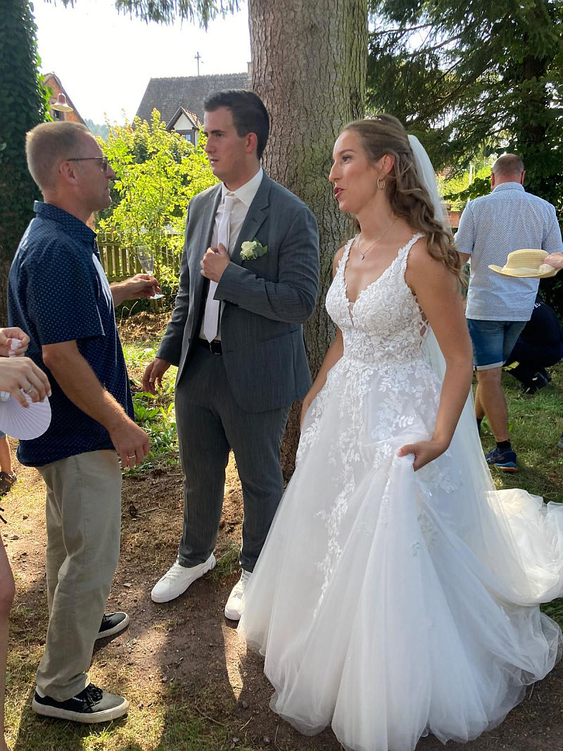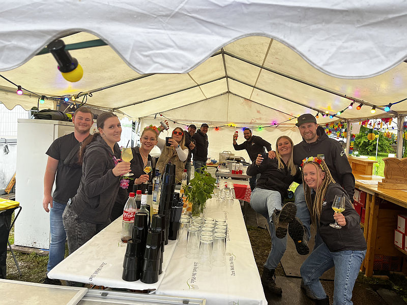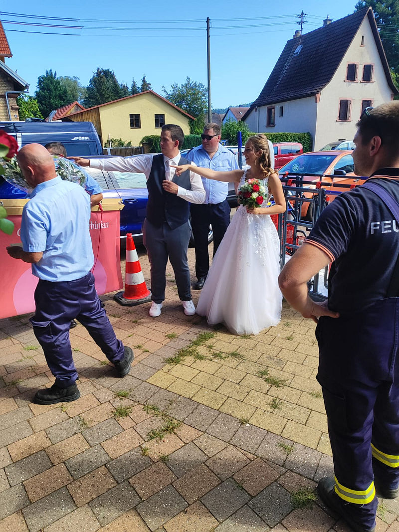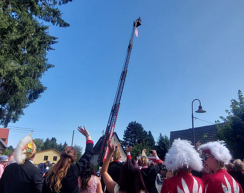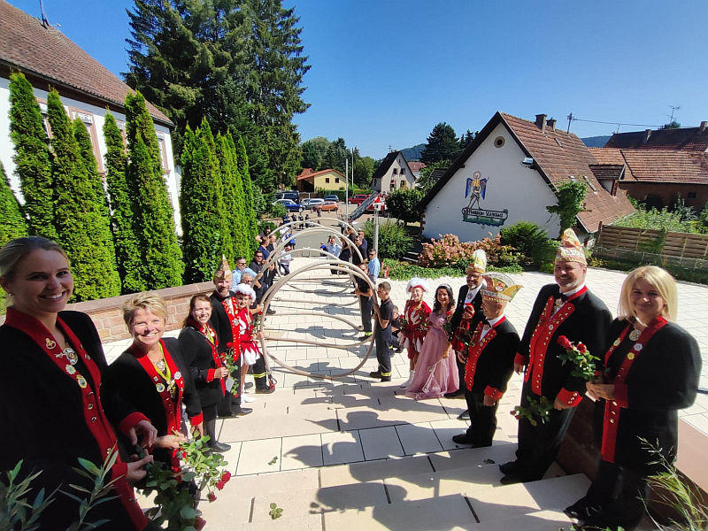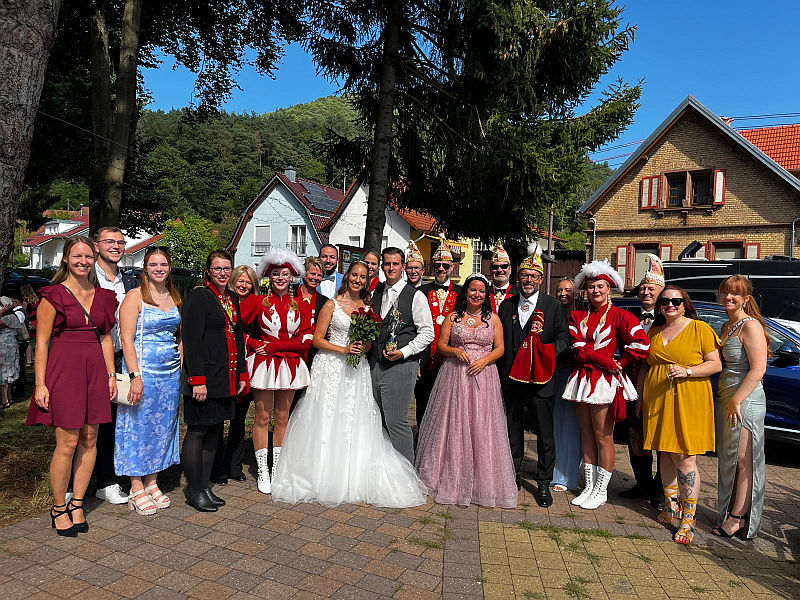 Bei heißem Sommerwetter hatte sich eine Abordnung zur Hochzeit von Corbinian und Christina Hellmann, geborene Mayer, am 24.08.2024 in Birkenhördt eingefunden.