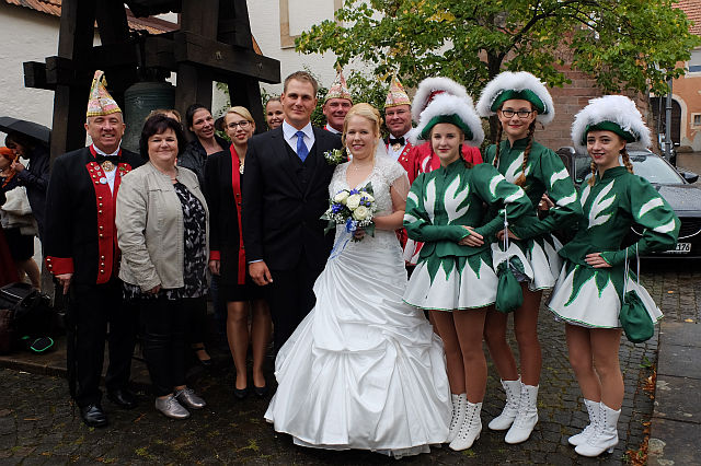 Die Vorstandschaft sowie zahlreiche Mitglieder der KG Hameckia e. V. ließen es sich nicht nehmen Theresa (Jenke) und Martin (Rödel) persönlich zur Hochzeit zu gratulieren.