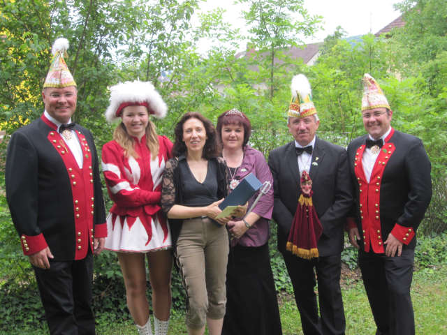 Das Prinzenpaar " Silke I & Joachim II "ließen es sich nicht nehmen, zusammen mit einer Vertreterin der Roten Garde, sowie zwei Elferräten der KG Hameckia persönlich die Glückwünsche zu überbringen. Die Jubilarin freut sich über den hohen Besuch, und bei einen Gläschen Sekt ließ man den Abend ausklingen.
