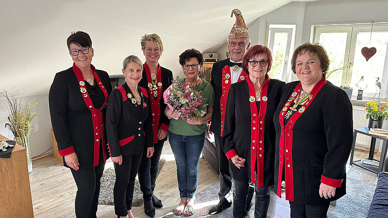 Am 29.05.2024 feierte Helga Weinstein ihren 75. Geburtstag im Kreise von Familie und Freunden. Zu diesem besonderen Anlass ließ es sich auch eine kleine Abordnung der Karnevalsgesellschaft Hameckia e. V. nicht nehmen, der Jubilarin einen Besuch abzustatten und ihr zu diesem beeindruckenden Meilenstein zu gratulieren.