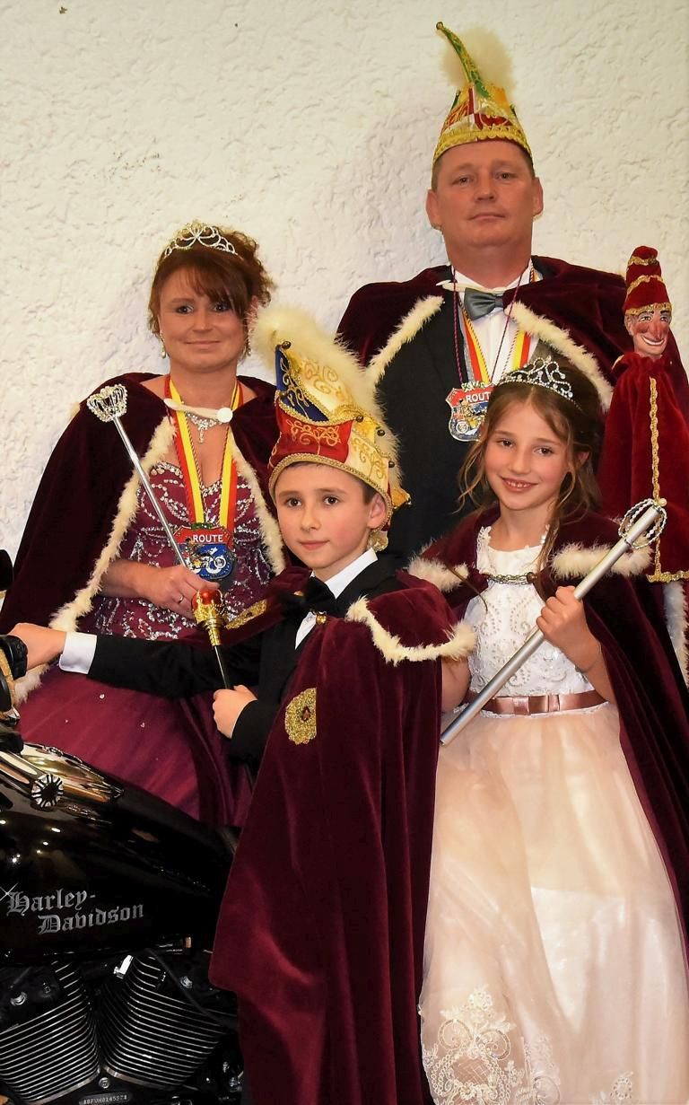 Erwachsenen Prinzenpaar für die Kampagne 2017/2018 sind Prinz Claudio I. und Prinzessin Kerstin I. (Böhm). Sie kamen gemeinsam mit einem für unser Motto standesgemäßen Auftritt auf einer echten Harley Davidson (Leihgabe von Stefan Hitziger) in die Schlosshalle gefahren.