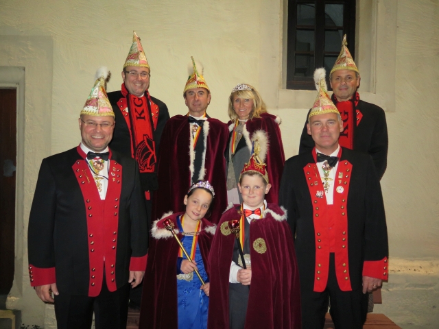 Doch wer thront dieses Jahr über die holde Narrenzunft? Dreigestirn, Prinzessin oder doch wieder ein Prinzenpaar? Per Eil-Express wurden vermummte Gestalten ins Geschehnis gebracht, und a´la „ Was bin ich“durften die Zuschauer den jeweils 3 Parteien Fragen stellen um so die zukünftigen Herrscher zu ermitteln.Ein weiteres Dreigestirn entpuppte sich als Fehlanzeige, auch eine Vater-Sohn Offenbarung erwies sich als falsch.