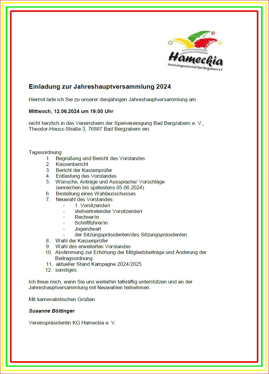 12.06.2024 Mitgliederversammlung bei der KG Hameckia e.V.