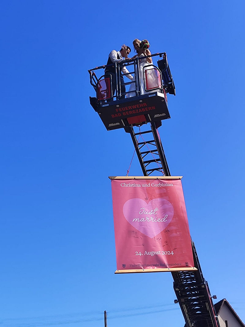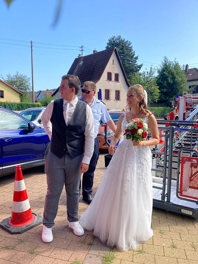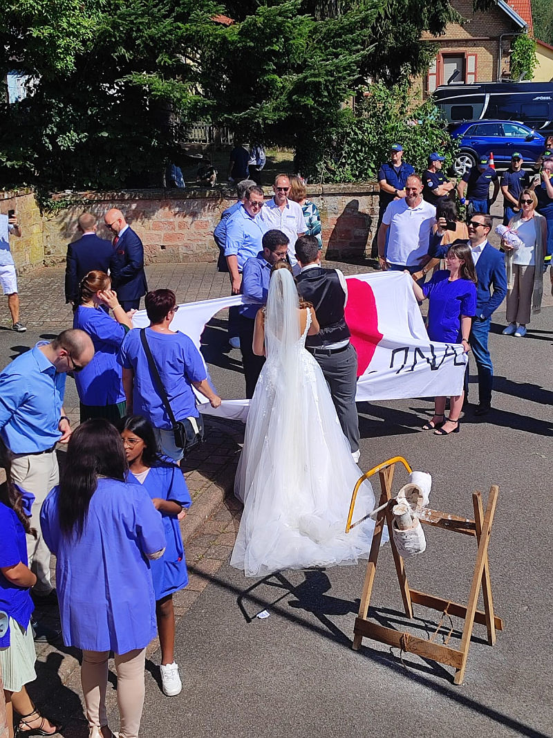 Bei heißem Sommerwetter hatte sich eine Abordnung zur Hochzeit von Corbinian und Christina Hellmann, geborene Mayer, am 24.08.2024 in Birkenhördt eingefunden.
