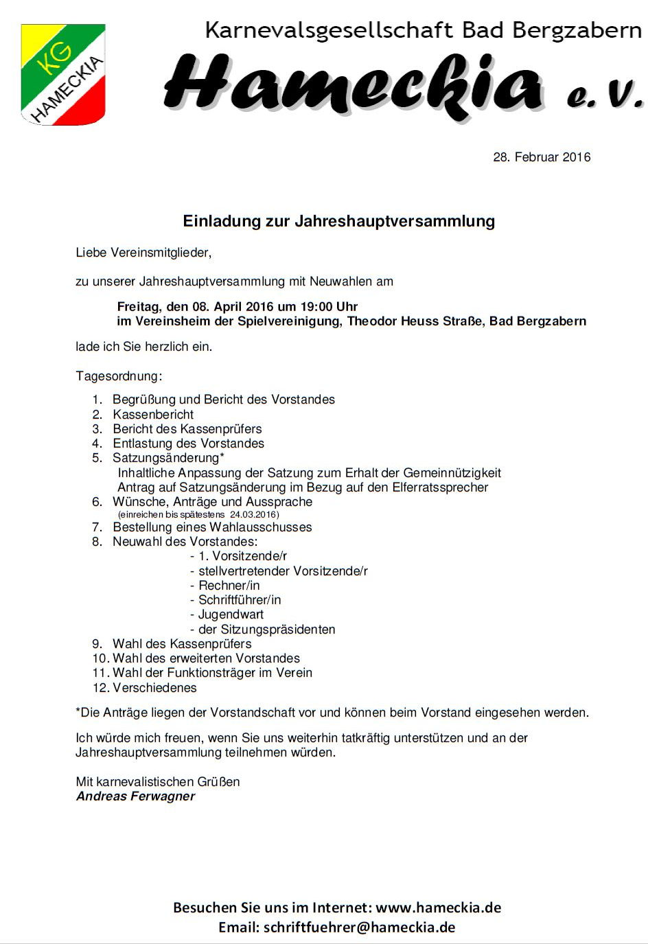 08.04.2016 Einladung zur Mitgliederversammlung