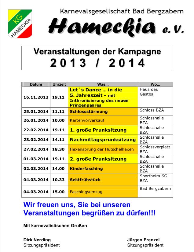 Termine Kampagne 2013 -2014