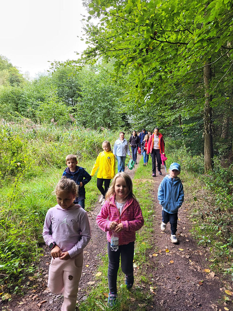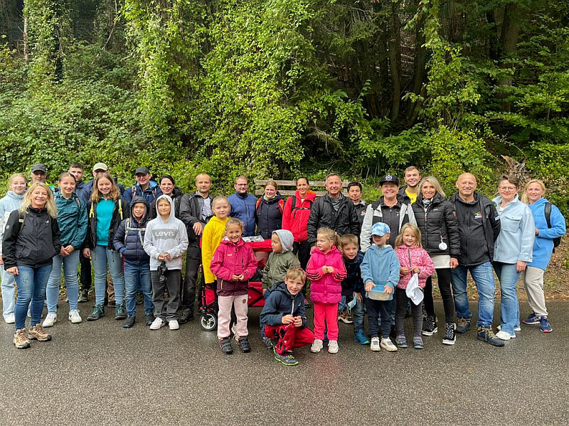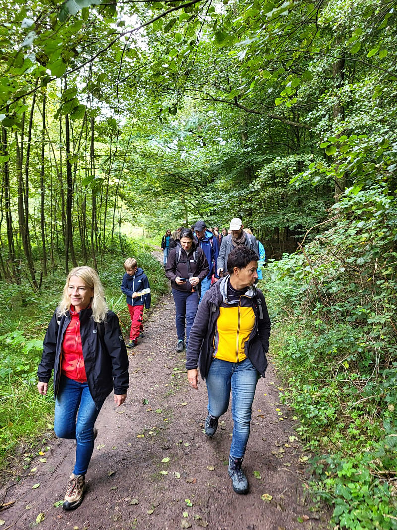 Eine bunt gemischte Gruppe aus Kindern aller Altersstufen, Bollerwagen, Aktiven und Eltern machte sich über den Waldgeisterweg auf nach Schweigen-Rechtenbach.